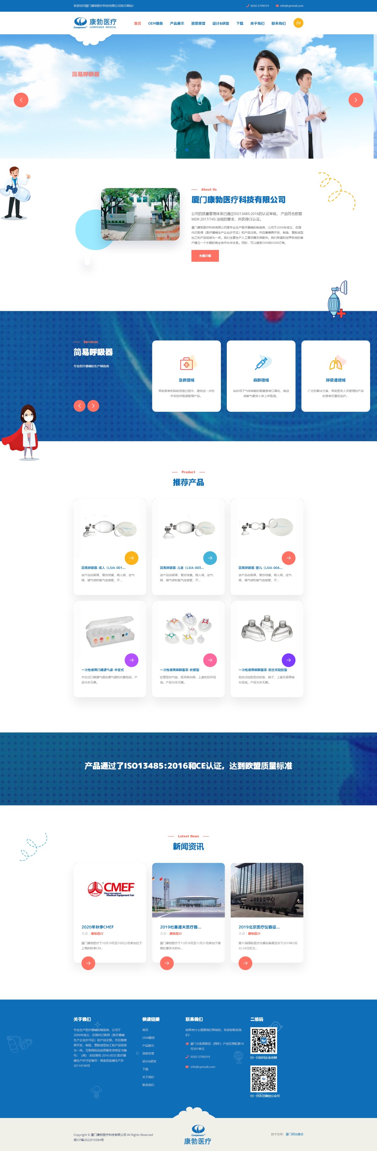 我们主要生产人工复苏器及其配件。公司的质量体系已通过ISO 13485:2016的认证审核。产品符合欧盟MDR 2017/745的指令要求,并获得CE认证。